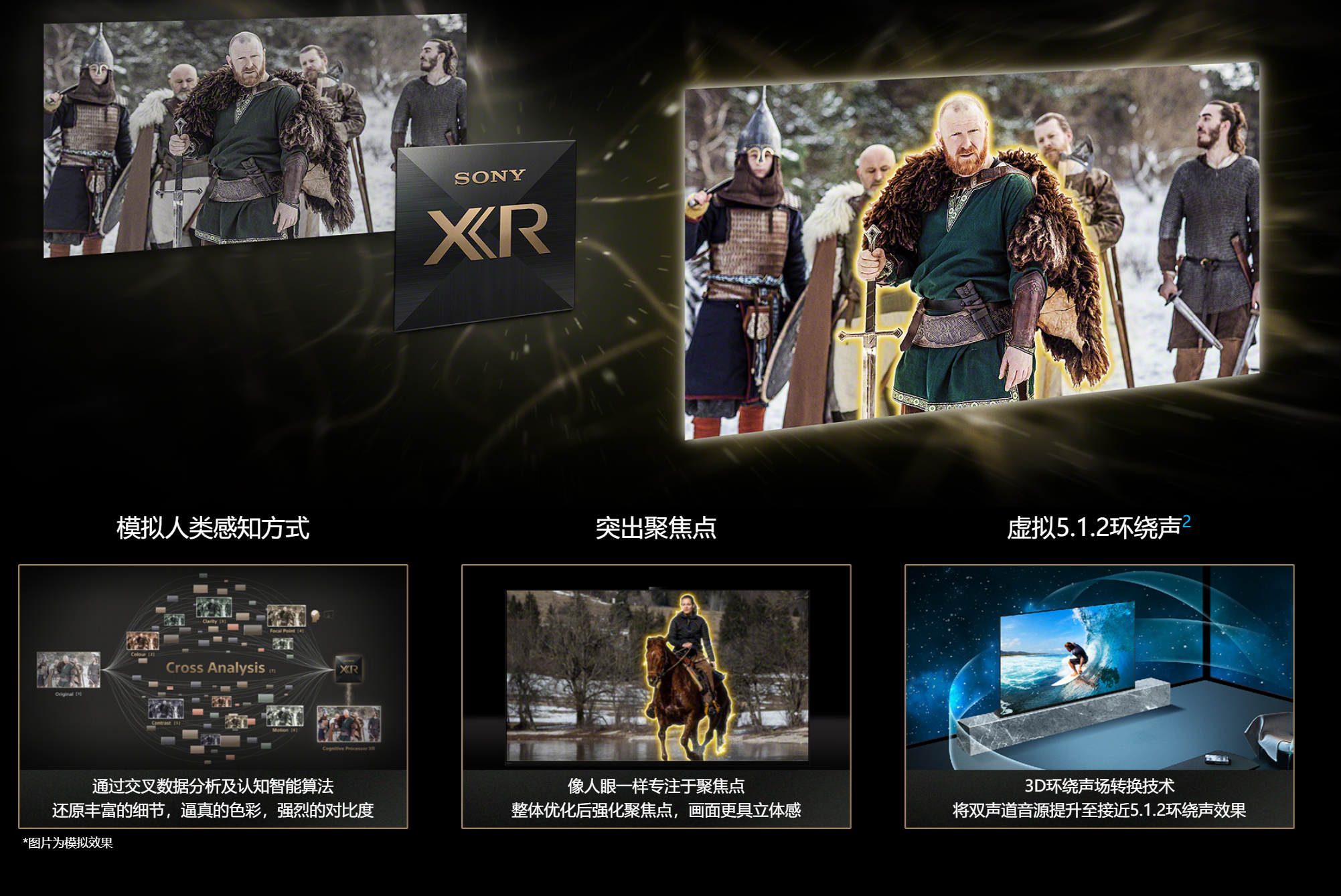 ▲XR认知芯片中的认知指的便是一种超越AI的认知算法,XR认识芯片可以模拟人类的感知方式,找到画面想要突出的重点,并将重点画面中的细节进行优化,使画面更具有立体感。除此之外,XR认知芯片还可以将双声道的音频经过算法还原,提升至5.1.2环绕声效果,可谓大幅提高音频感受。