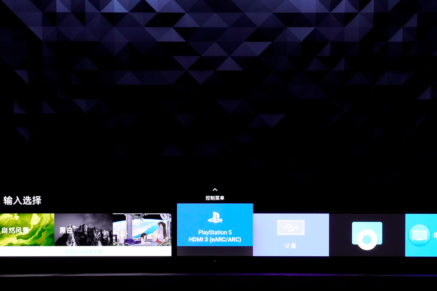 ▲首先是其系统流畅度非常高,且系统UI优化上非常之好,举个简单的例子,用户在输入源页面可直接从PS5切换到U盘,或者切换到Bilibili或电视直播,而无需复杂的页面切换,即使老人与小孩也可以轻松玩转。