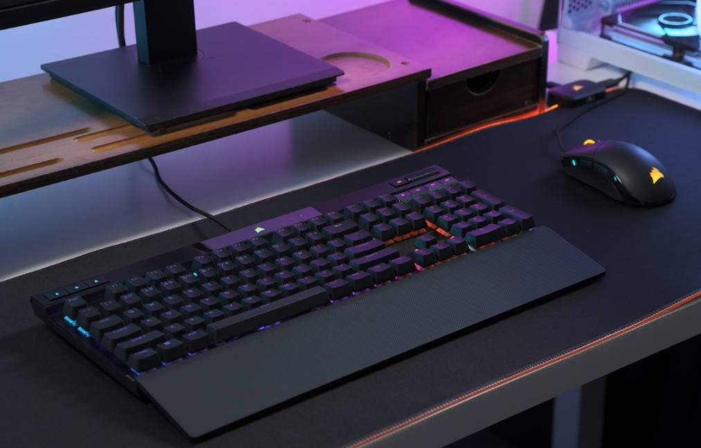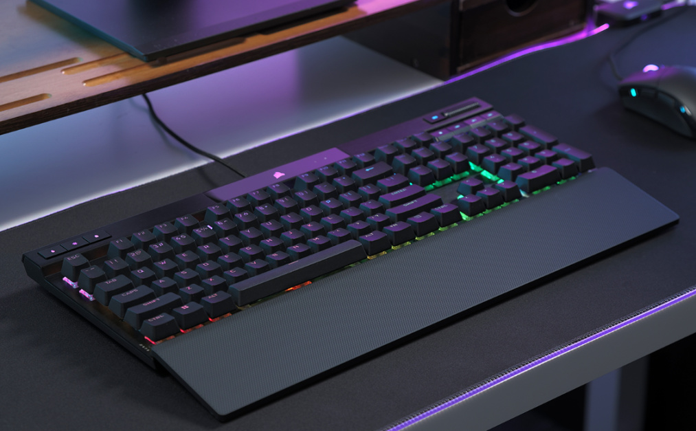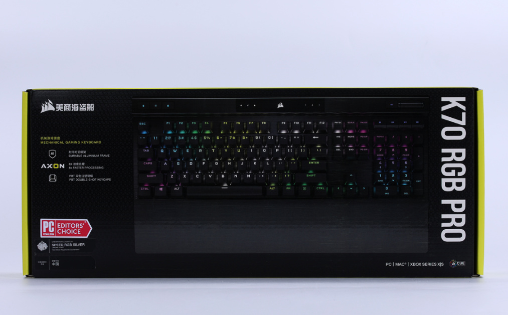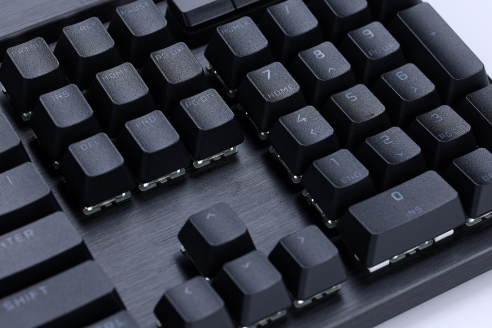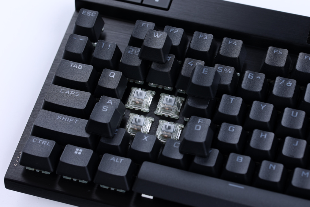 键帽方面,K70 RGB Pro选择了手感干爽、不容易打油且更耐磨的PBT材质键帽,1.5mm厚的键帽壁搭配上标准键帽高度和键帽外形,可以适应绝大多数玩家的使用习惯。较大的键帽也都采用了卫星轴的设计,有效的降低了更换键帽时的难度;