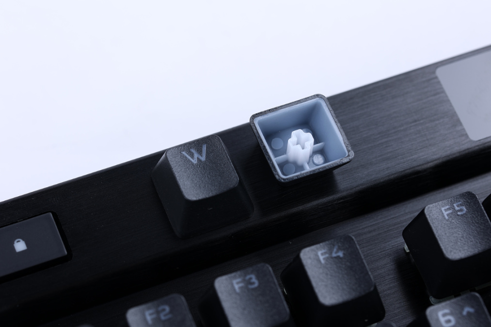 双色注塑闭口工艺的使用,让键帽字体更美观,半透明的乳白色字体材质也让键帽的透光效果更加均匀。同时,通用的轴体尺寸使得所有的键帽均支持替换,玩家可以根据自己的喜好更换键帽;