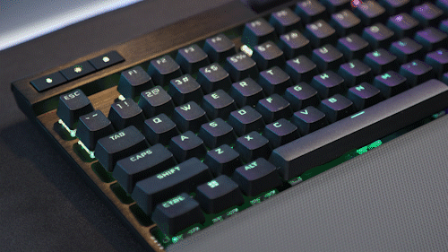 灯效方面,在ICUE的加持下,K70 RGB Pro键盘可以做到任意单个或多个灯合并进图层独立设置灯效,板载状态下最多可同时叠加设置20层灯效;