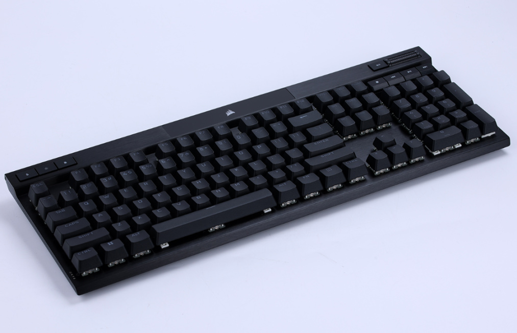 键盘采用了悬浮式结构设计,大大降低了给键盘清灰维护时的难度。同时,键盘根据搭载轴体的不同,共推出了5种不同的版本,除了采用青、茶、红、银四种樱桃原厂MX轴体的版本外,还推出了搭载美商海盗船自研的OPX光学轴体的版本,其中OPX光学轴体版本的K70 RGB Pro还有一款全白配色的K70 RGB Pro键盘供玩家选择;