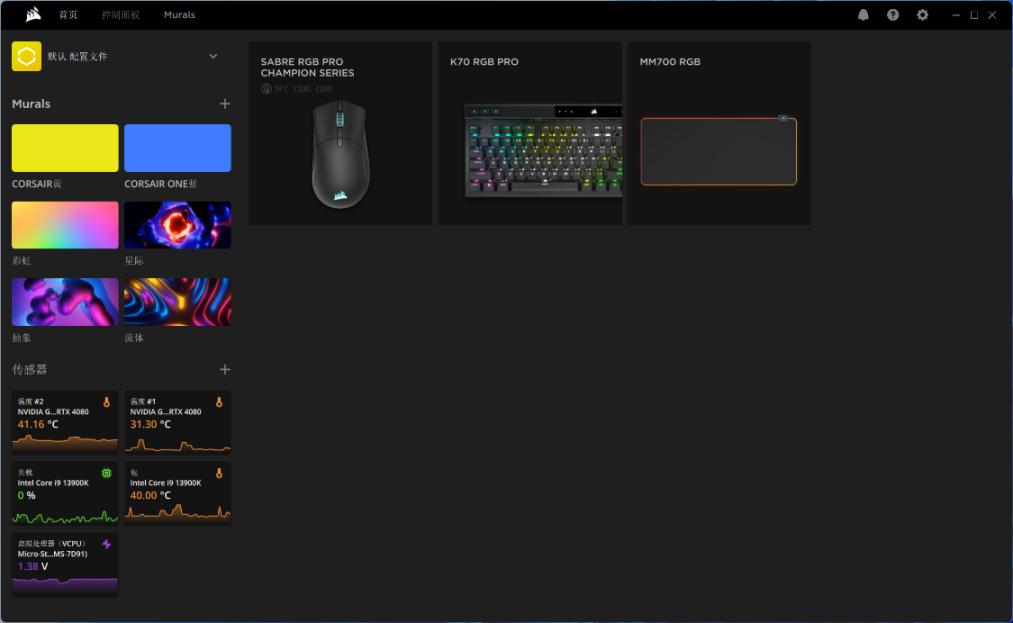 鼠标垫控制盒内置了12种灯光效果,可以通过控制盒顶部按钮直接调整鼠标垫的灯效。驱动安装完成后,便可以在ICUE控制中心中,对鼠标垫的灯效进行更多花样的调整;同时,咱也能看到键鼠也已经出现在ICUE控制面板,套装BUFF加成100%?