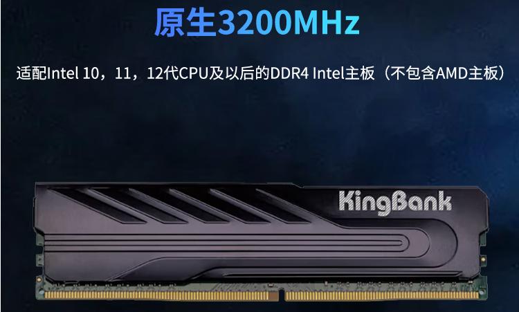 金百达(KINGBANK)8GB DDR4 3200 台式机内存条 黑爵系列