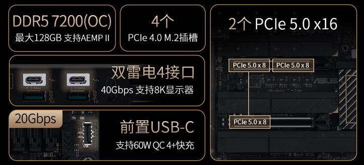 当然如果你有更加专业的需求,那还是建议选择ProArt系列,专门争对创作者/设计师开发的主板,双雷电+万兆网卡,双PCIe 5.0接口,以及更加丰富且专业的扩展和功能设计,适合对扩展要求更高阶的用户。