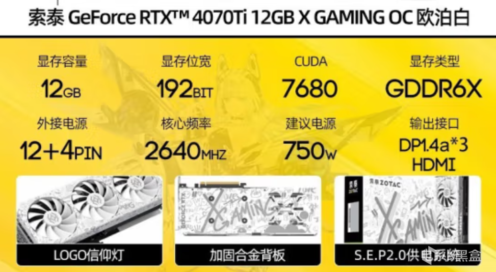 索泰(ZOTAC)GeForce RTX 4070 Ti - 12GB 天启