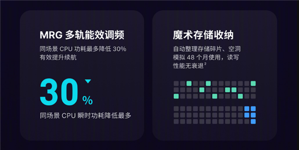 此外,凭借MRG多轨能效调频与魔术存储收纳技术,升级到Flyme 10后,手机的CPU功耗最高能够降低30%,并在48月的长期使用中确保读写性能无衰退。