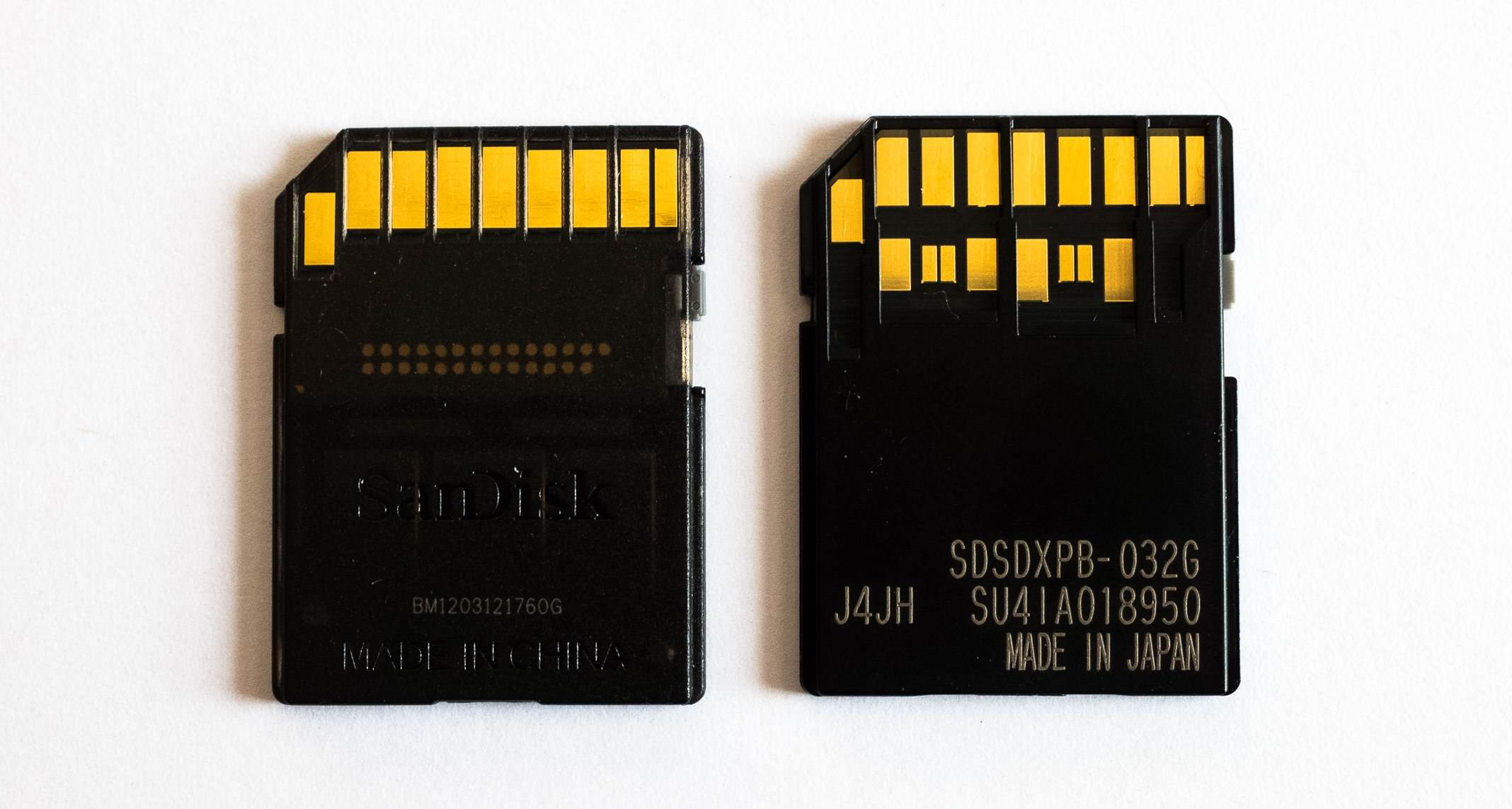 识别UHS-Ⅰ和UHS-Ⅱ标准非常简单,只要看卡片背面的金手指数目就可以了:
