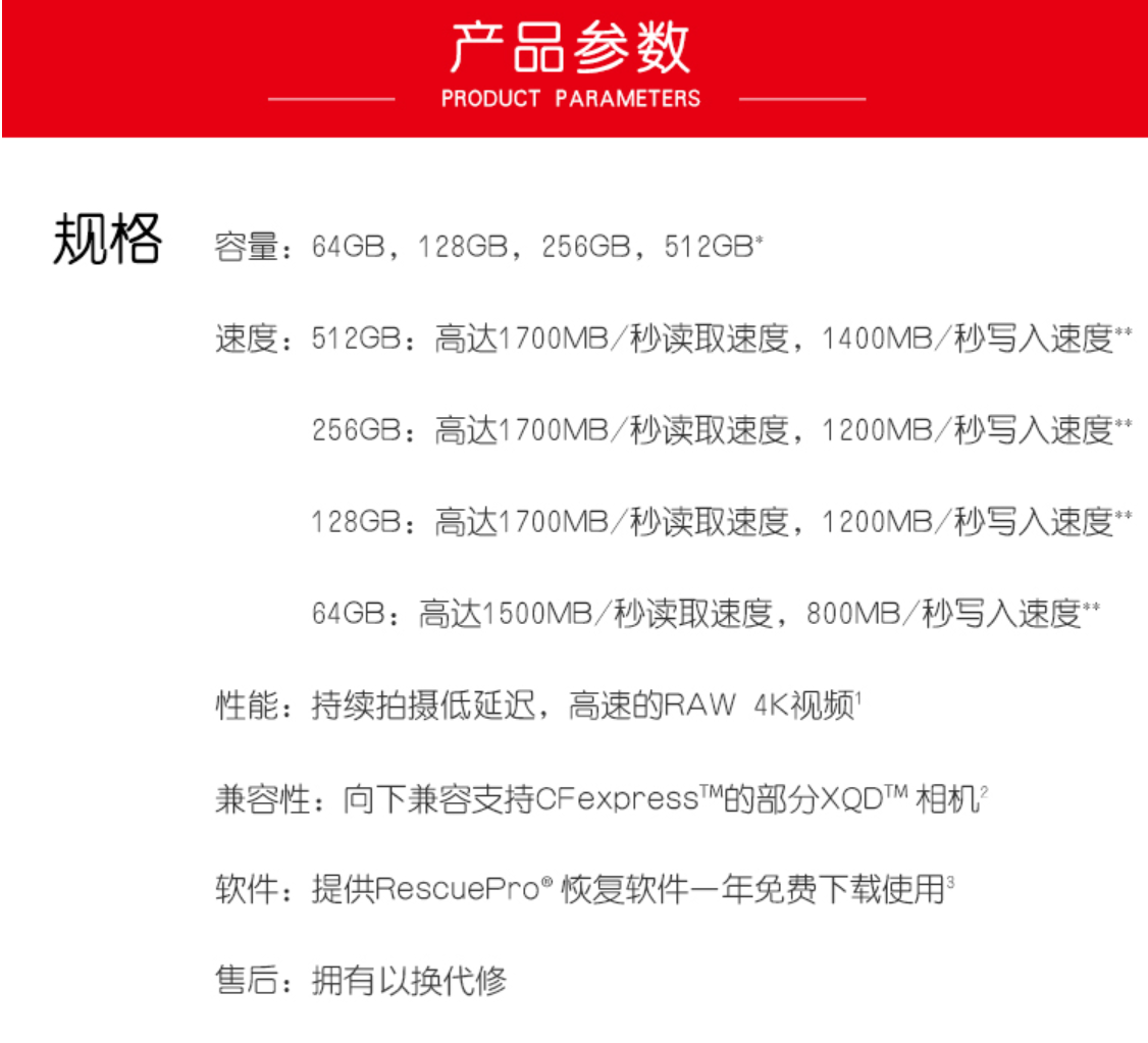 ▲最后,高端卡标配的终身以换代修必不可少,还拥有一年的恢复软件使用权,是一款很靠谱的CFexpress卡。