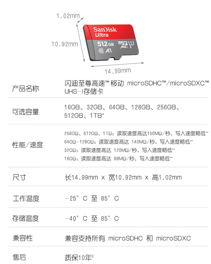 ▲最后,作为闪迪旗下的高端TF卡,至尊极速移动版拥有有限条件下的终身以换代修,用起来无比的安心。