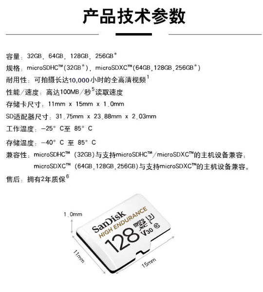 ▲最后,因为使用场景的特殊性,行车记录仪&安防监控专用内存卡仅拥有2年的质保。