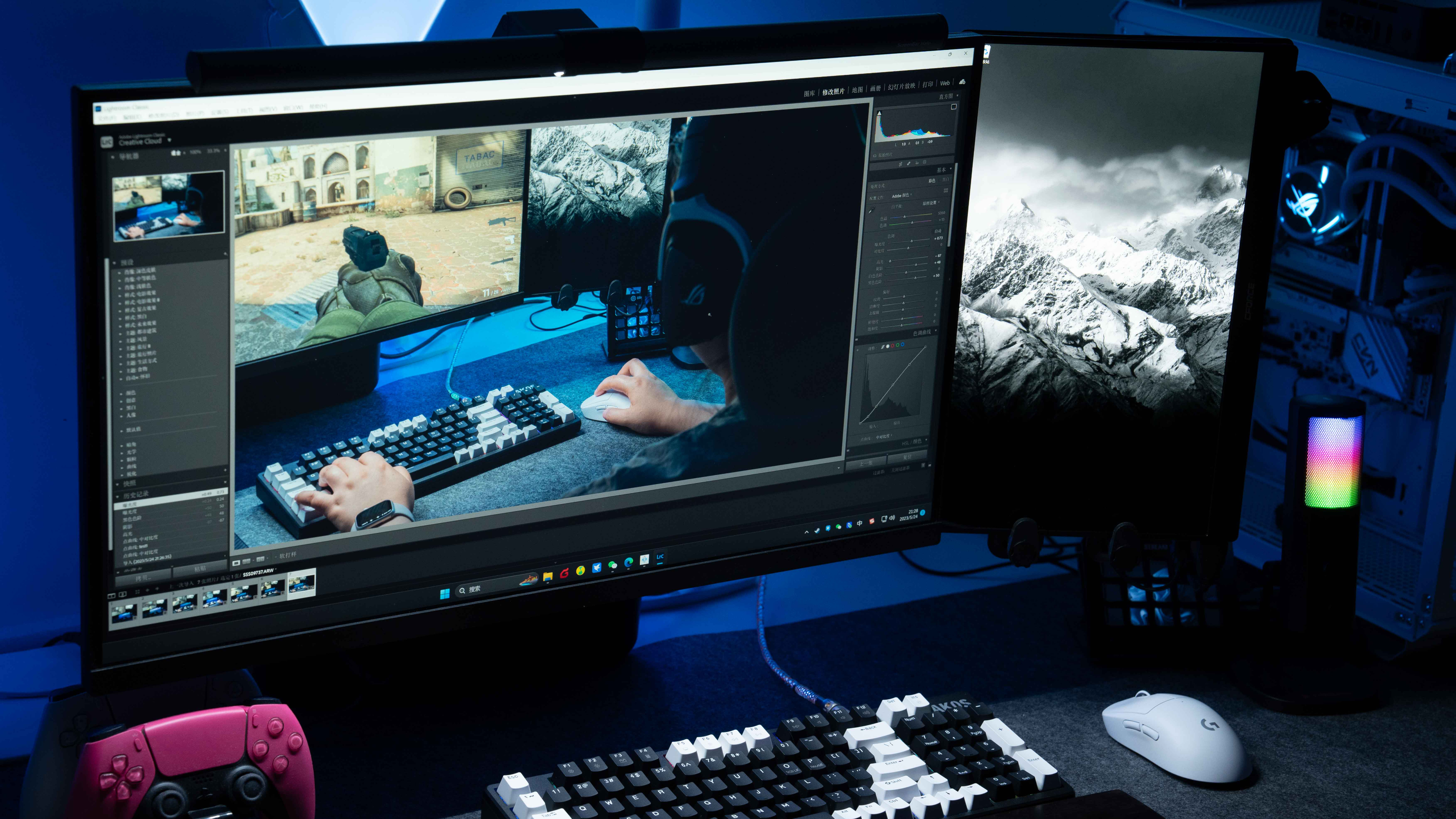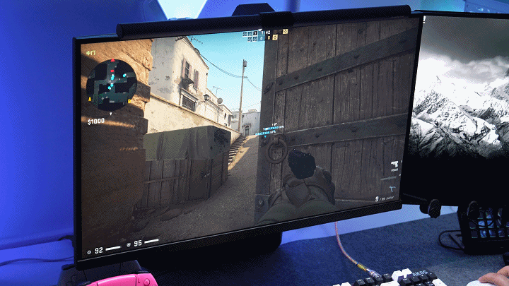 装好后的第一眼,视觉效果非常不错,右边是OLED,科睿P6的暗部效果比OLED相差没有想象中那么大,表现已经非常不错了,HDR10是支持10Bit色深,虽然是抖上来的,但小几千的显示器基本没有真10bit,HDR10没有要求显示器亮度,一般同级别亮度大概200多nit,这款做到了300nit,日常足够用了。