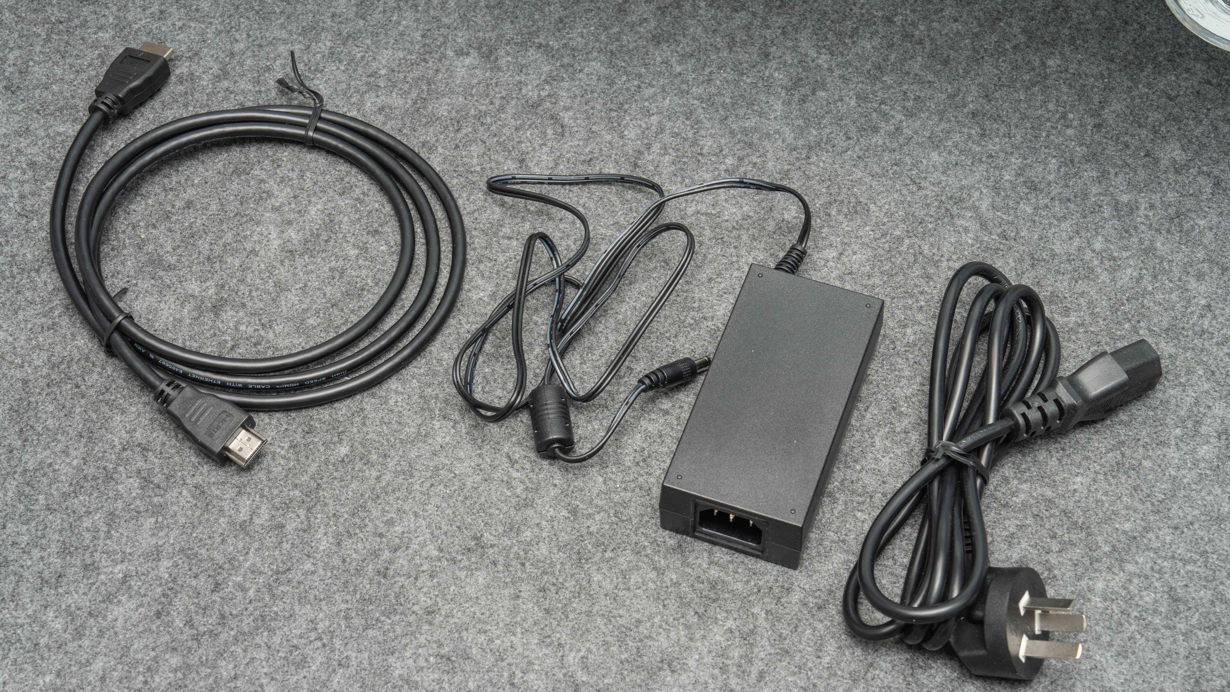 原厂配件一根HDMI、DC供电套装,科睿P6的电源是外置的,好处是显示器机器轻很多,坏处是还得找地方藏电源适配器,但总体来说我还是喜欢外置的,对显示器支架要求低一些,散热也会更好。