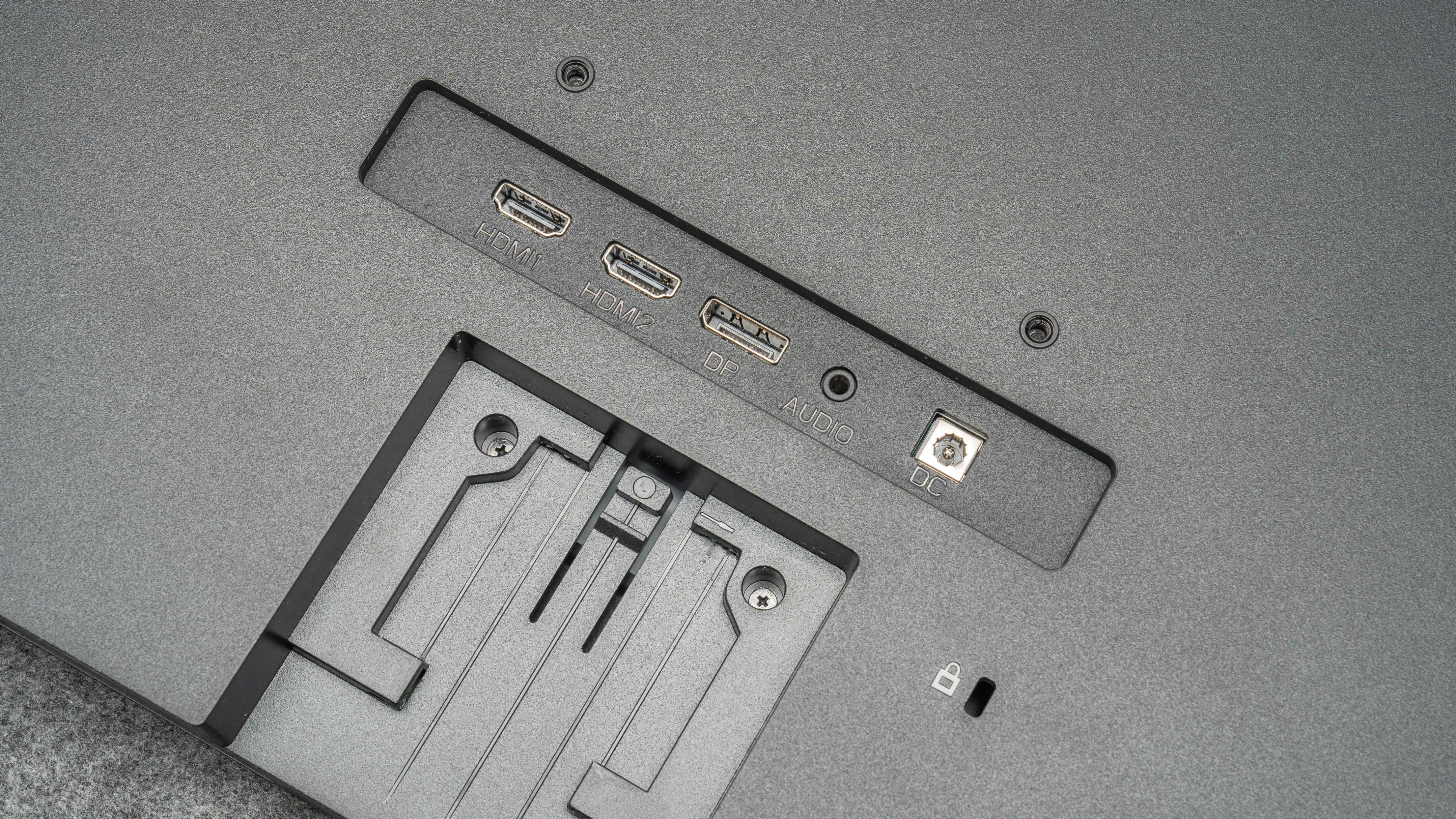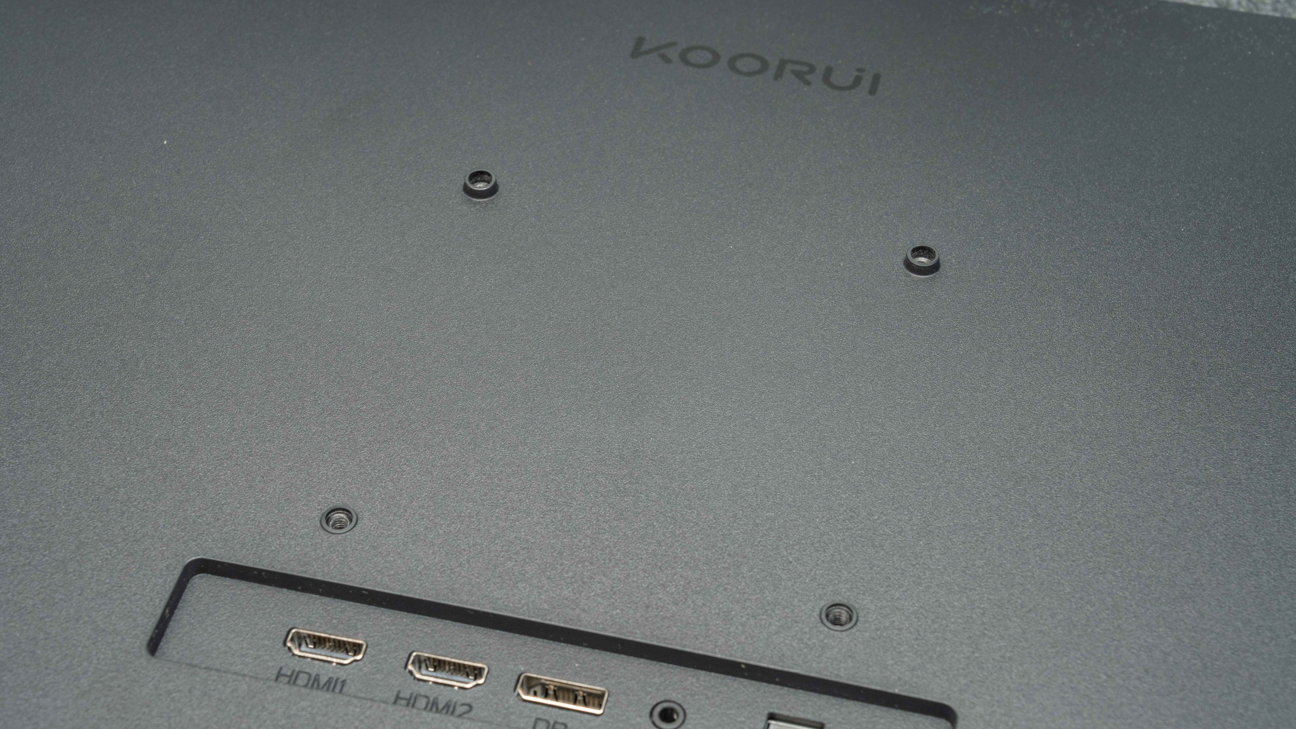 科睿P6背后有两个HDMI 2.0、一个DP 1.4的口,HDMI 2.0是4K60Hz的底线,如果你用老HDMI 1.4的线只支持30Hz,DP就更随意些了,配支架单独购买一根3米的长DP线。
