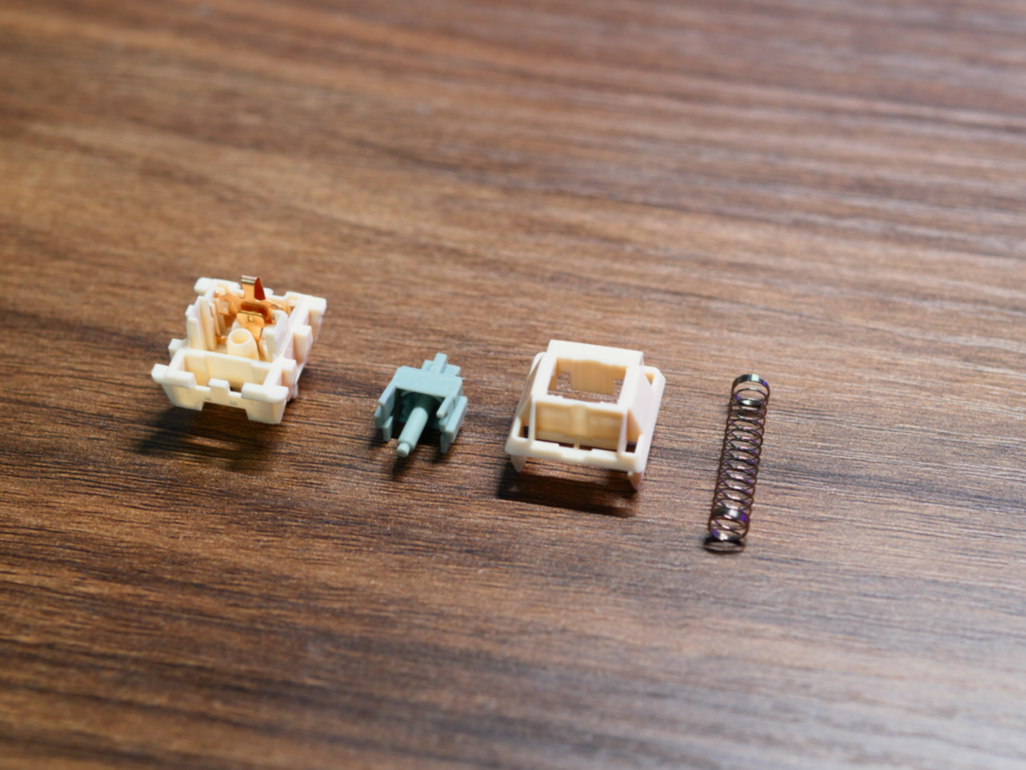 弹簧很粗壮,确保了回弹跟手,轴心柱做了加长,这也是按键音好听的关键。值得注意的是这款轴的润滑很少,基本只有小脚上的那一点。这也就意味着这款轴体的顺滑体验完全因为POM材质的自润滑以及九紫高精度的模具。