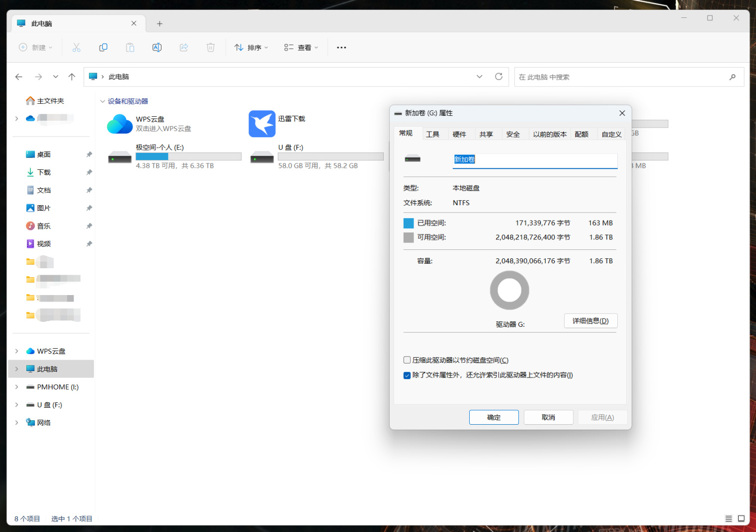 如果是用于存放数量不多的大文件(如视频、电影等等),保留10%的空闲空间即可。