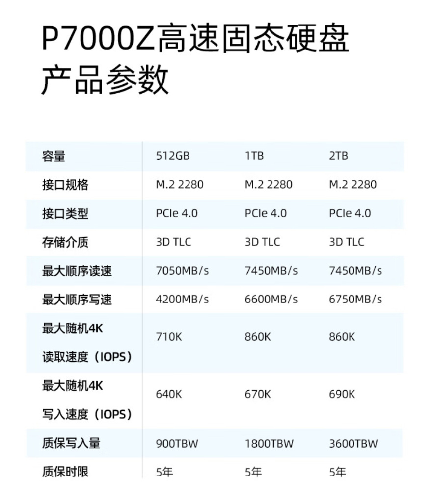 第一款是使用天下大同方案的P7000Z,主打的是消费级别无缓高随机读写能力+高保修。