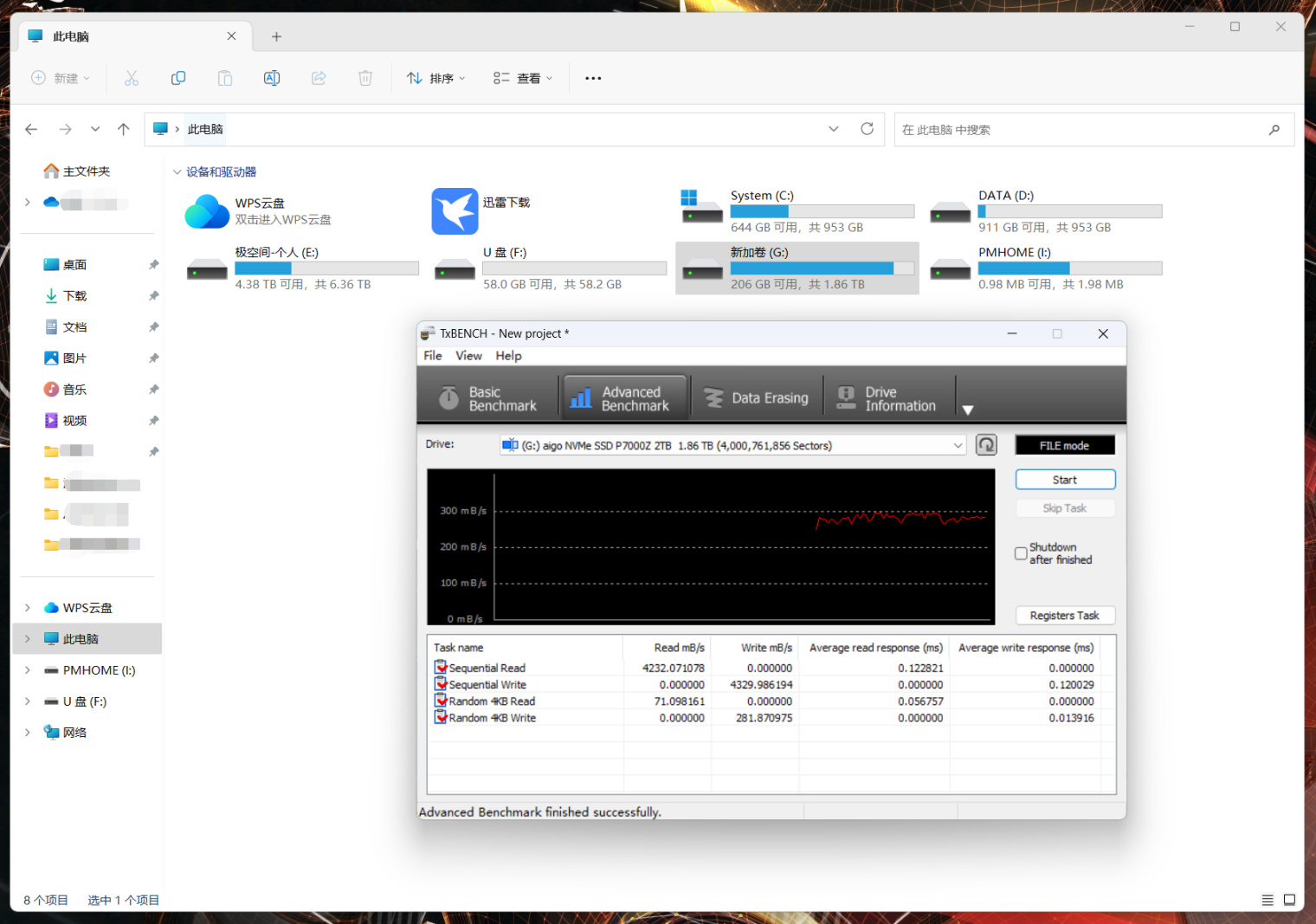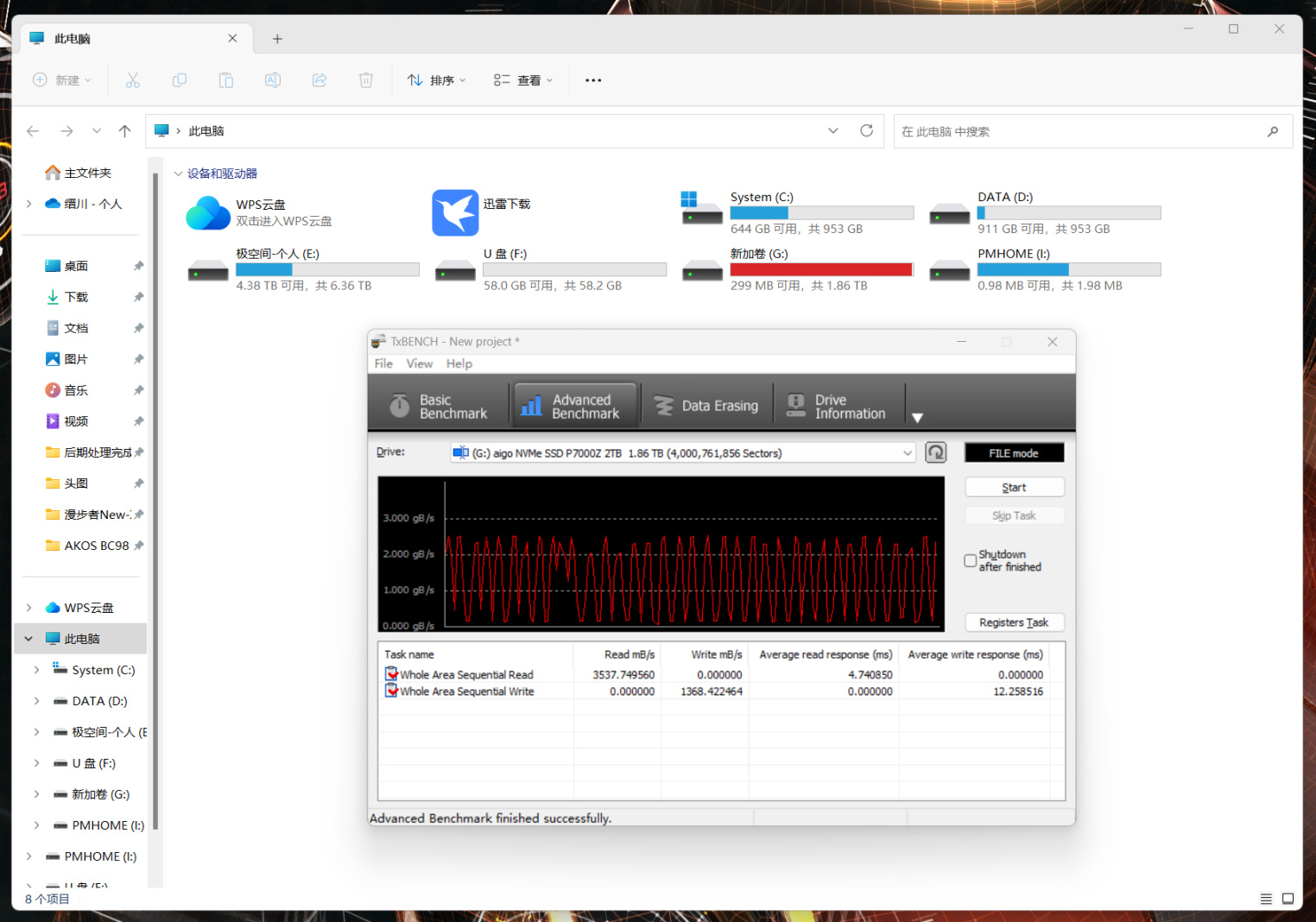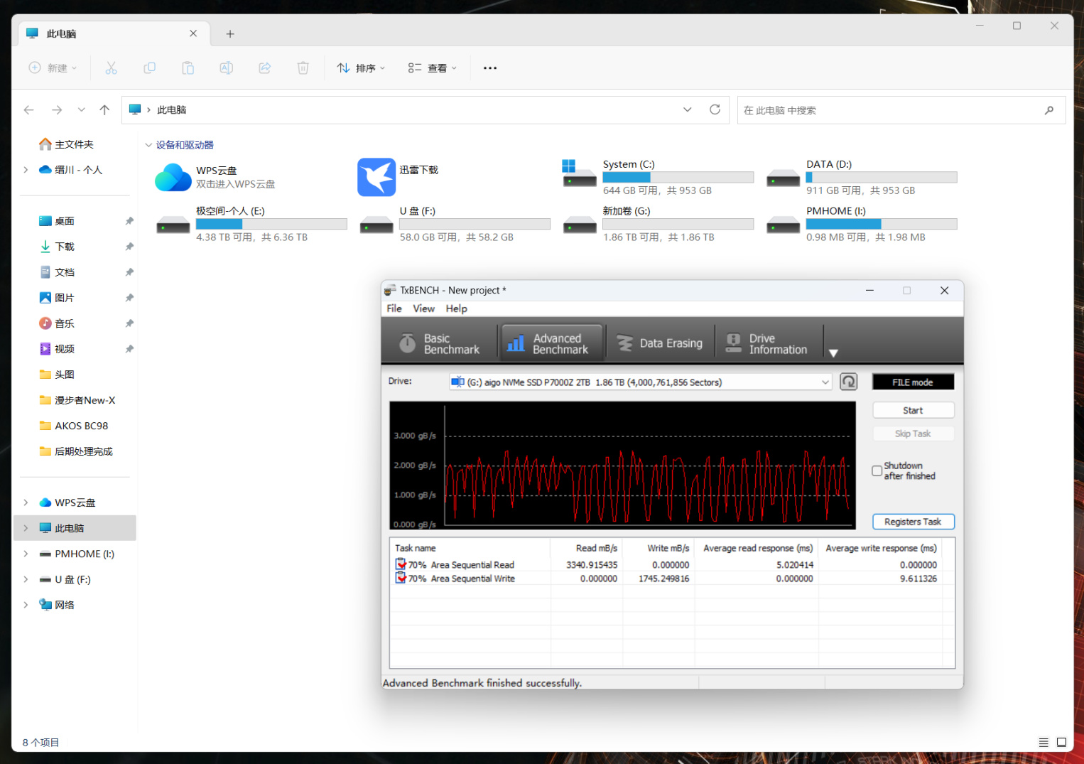上面两个测试工具主要测的是空盘性能,接下来用TxBench测试一下爱国者P7000Z在写满小文件条件下的读写性能。