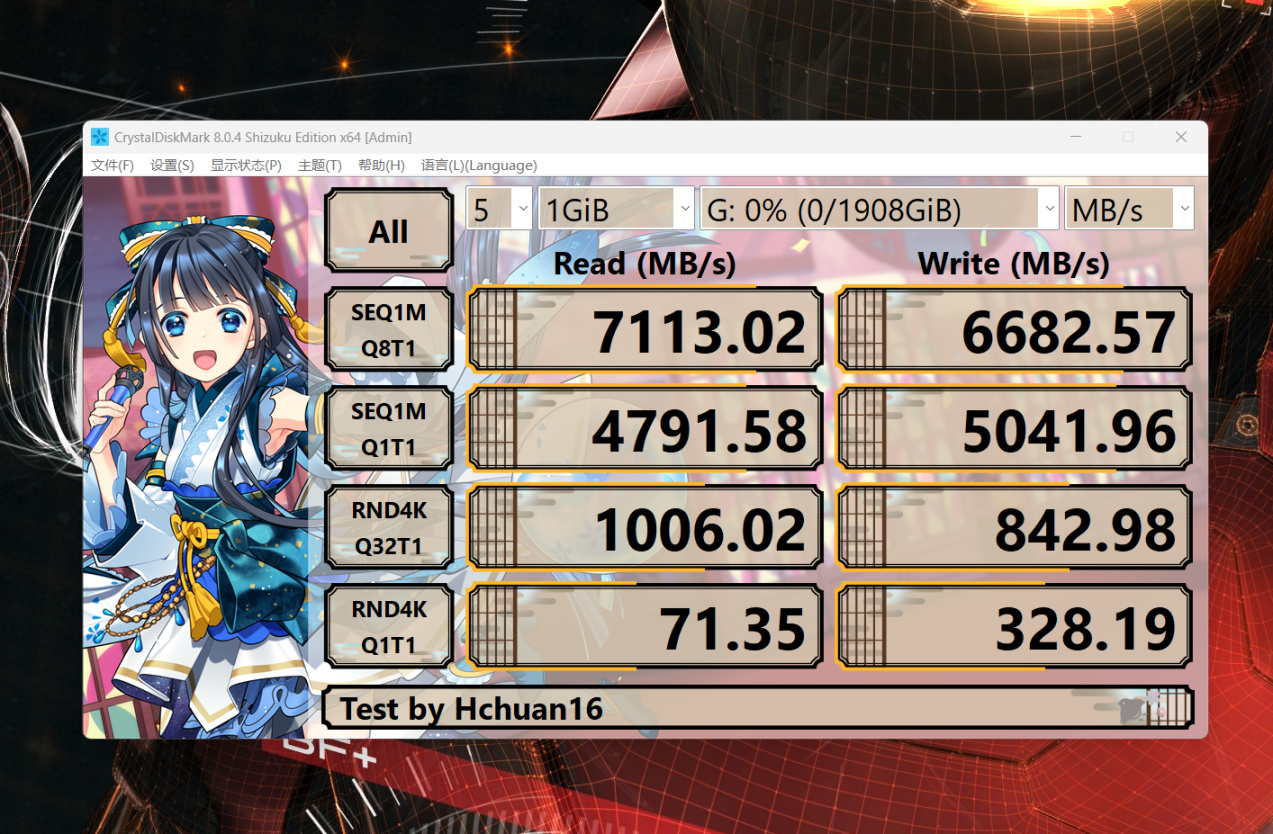 512G版本的顺序读取速度为7050MB/s,顺序写入速度为4200MB/s,随机读取IOPS为710K,随机写入IOPS为640K。