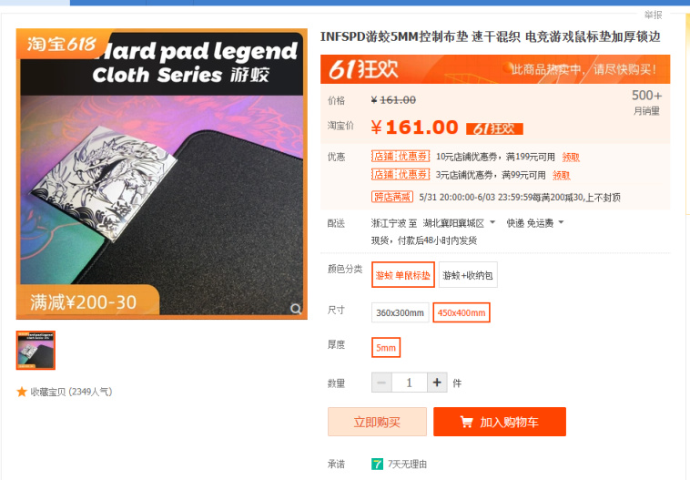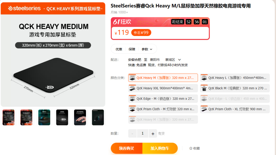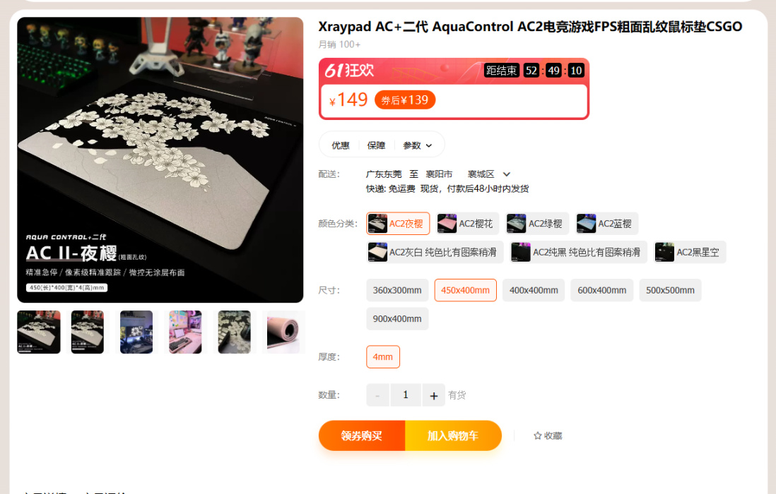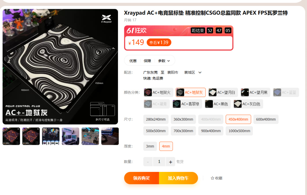因为鼠标垫这个东西,特别是布垫,本质是个消耗品,超过300的什么剑匠 土星 之流 我这种经常玩鼠标垫的人都觉得消耗不起,钱到还好说,快递物流确实是难顶。所以本次选择的也都是相对比较容易买到的产品