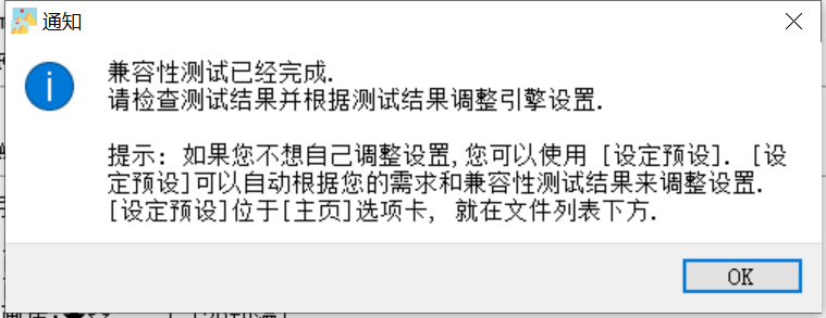 首次运行该软件时,需要进行系统兼容性测试,以判断其内置的各种引擎和算法是否能够启用。