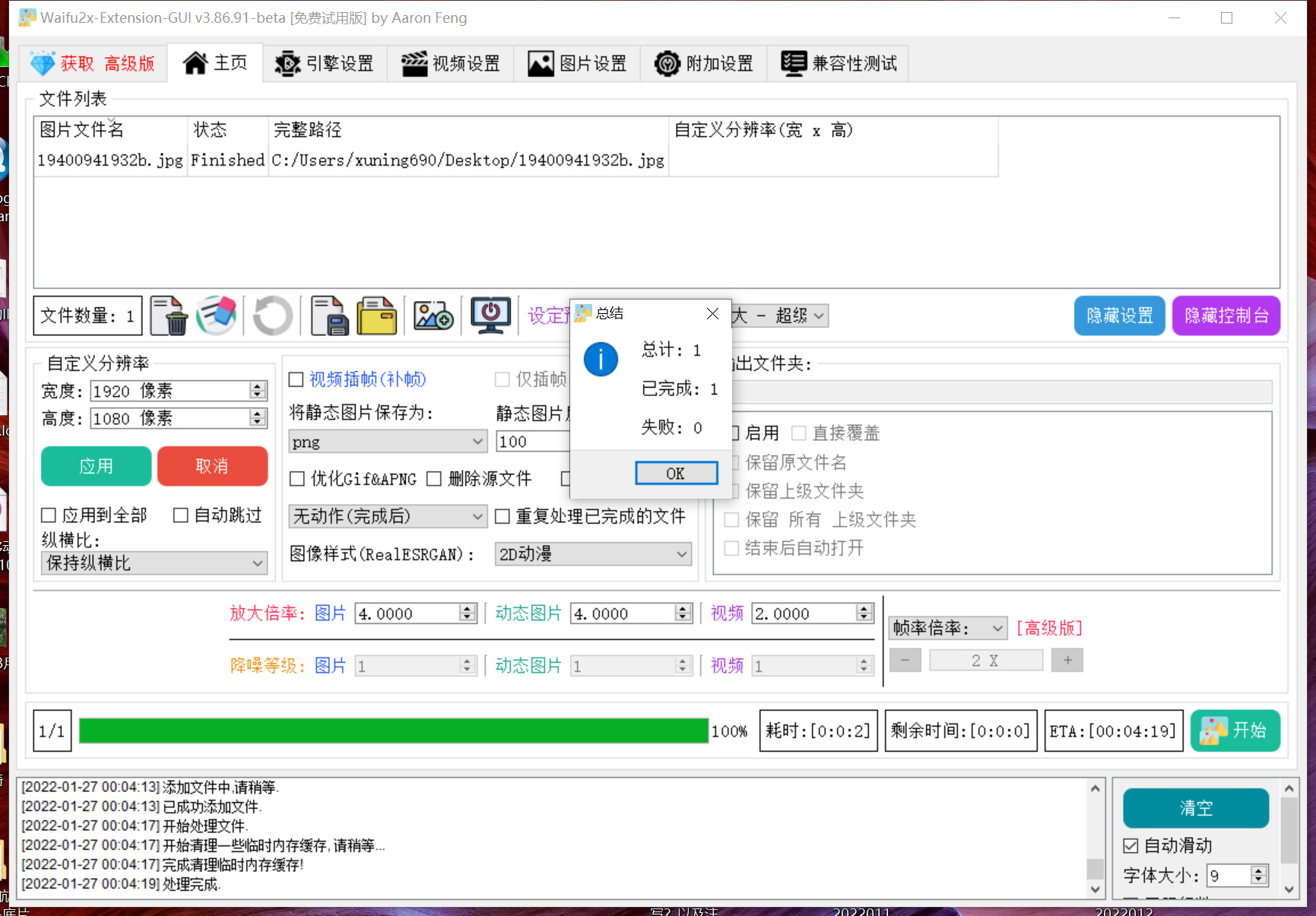 接下来选择图像样式、放大倍率后,即可点击右下角的开始按钮,进行处理。当然这里还有其他可供设置的功能,大家自行研究即可。