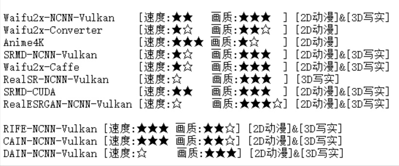 SRMD-ncnn-vulkan / RealSR-ncnn-vulkan / Anime4KCPP / SRMD-CUDA