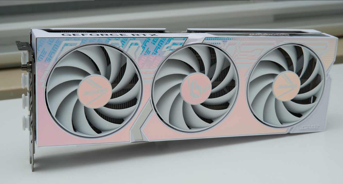 ▲七彩虹RTX40系列的iGame Ultra显卡延续了上代Ultra显卡的白色外甲设计,正面采用大块渐变设计,随着光线的变化呈现出不同的色彩效果,iGame Logo及圆形波点元素作为图案底纹让显卡有着更丰富视觉表现力。