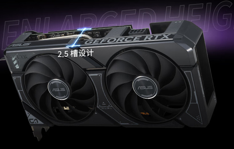 ▲上面三款RTX 4060 Ti显卡都是三风扇的,不适合放在itx小钢炮中使用,所以这里推荐一款华硕的双风扇DUAL GeForce RTX4060TI-O8G,其采用2.5槽设计,短小精悍,十分适合在空间有限的itx机箱中使用,为其提供强劲的游戏表现。