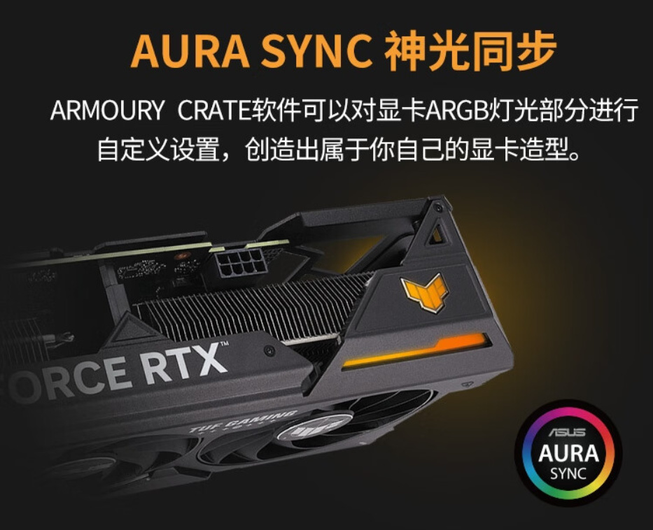 ▲而且TUF系列显卡同样支持华硕的AURA SYNC神光同步,可以与华硕旗下的其它硬件与外设组成神光同步,简直爽歪歪。
