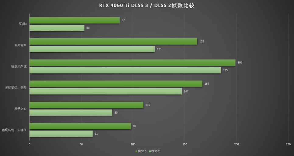 ▲在世界测试中,RTX 4060 Ti 开启DLSS3后可以在绝大多数游戏中获得超过百帧的光追游戏体验,在暗影火炬城与生死轮回这种横板动作游戏中表现更是出色,而在优化极佳的光追FPS游戏《光明记忆 无限》中同样能够获得167 FPS的极佳游戏体验。