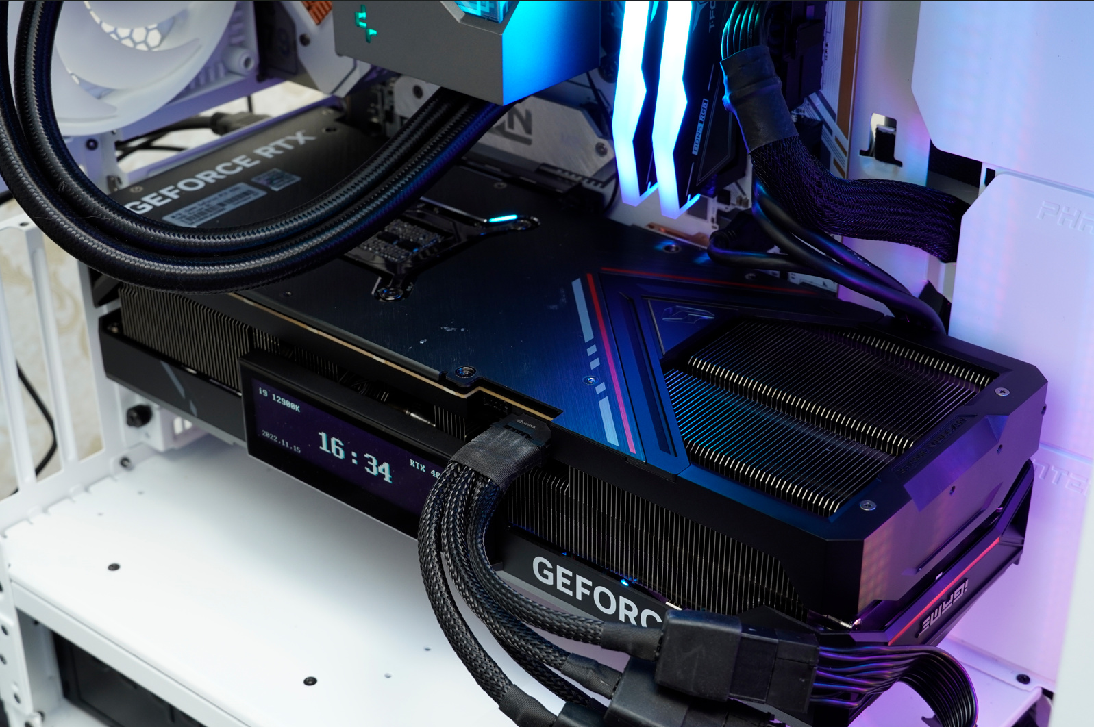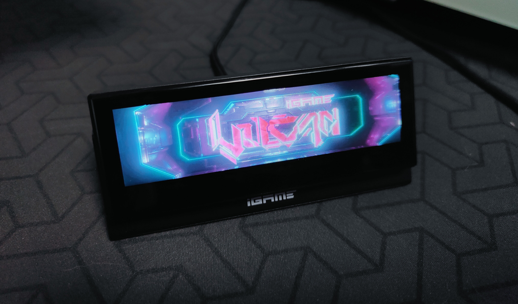 ▲而iGame 火神显卡最具识别度的LCD显示屏在本世代得到了巨大升级,不仅屏幕分辨率提升到了800*216px,画面更加清晰,而且采用磁吸式分体设计,无论显卡横装、竖装,屏幕内容总在你面前。显卡还配备了底座,显示屏可以独立显示内容,成为可爱的桌面摆件,也可以更好的帮助玩家实时监控游戏帧数与电脑性能。