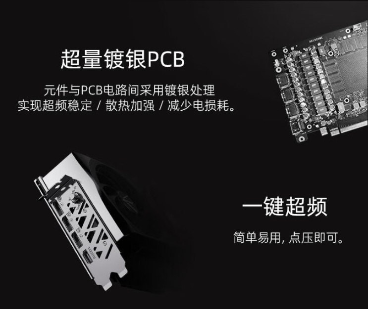 ▲另外,超量镀银PCB保证了显卡超频时依旧能够足够稳定,配合iGame著名的一键超频按键,可以说用起来爽快又顺手。
