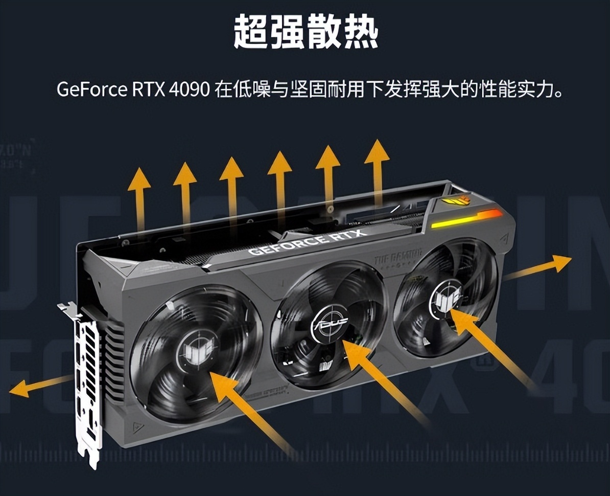 ▲如果说你觉得前面推荐的水神显卡装起来太麻烦,或者你对长久使用水冷显卡表示担忧,那么你可以考虑华硕的这款TUF-GeForce RTX4090-O24G-GAMING,三风扇风冷设计,仅对机箱的长度有一定要求,兼容性更强。