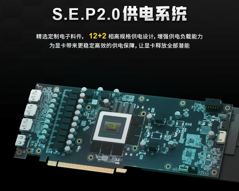▲当然,这款显卡的做工也很扎实,冰芯散热系统与S.E.P 2.0供电系统的12+2相供电,足以保证RTX 4070的稳定运行,大家也可放心选择。