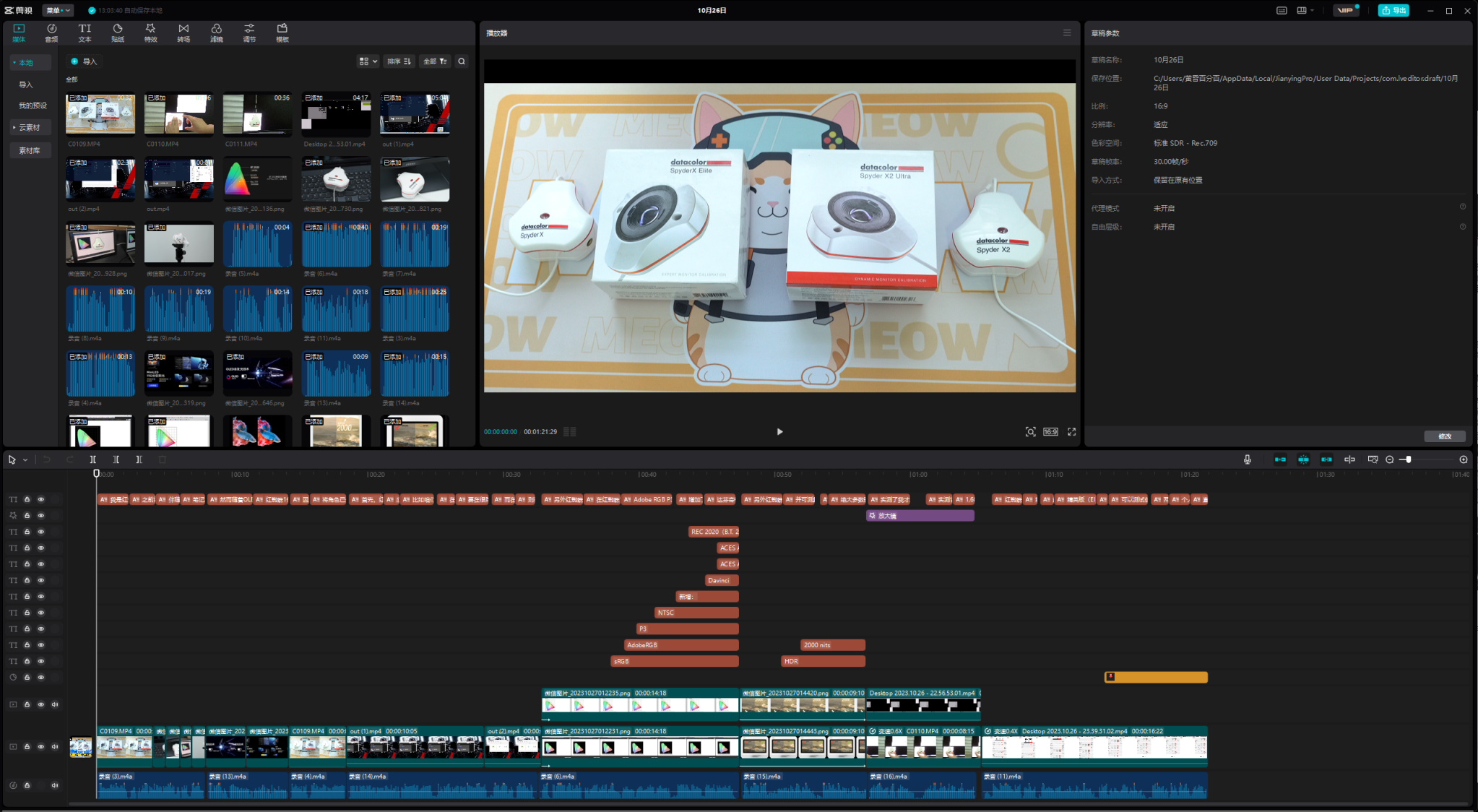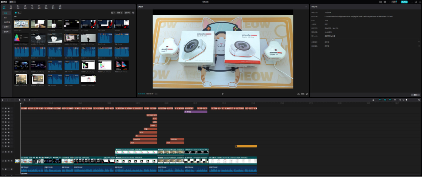 ▲我分别截取了21:9与16:9长宽比下,剪映软件操控面板,大家可以看到在21:9的屏幕中,素材栏里一行是可呈现9个素材,比16:9的屏幕能多显示40%的素材,同时,时间线也长了30%+,剪辑师不用在时间轴上滚来滚去,可以快速定位,总之,更大的屏幕,的的确确能够带来更高的工作效率。