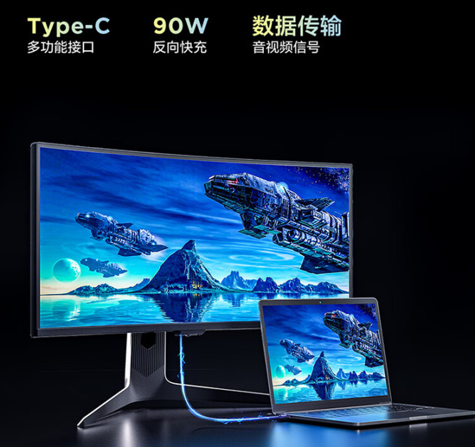 ▲雷鸟Q8搭载了一块 34英寸,21:9的带鱼屏,分辨率为WQHD (3440x1440),曲率为1500R。