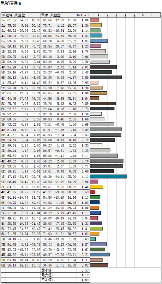 ▲在色彩精准度方面,雷鸟Q8表现得也很好,通过红蜘蛛48色测试,其ΔE仅为1.92,完全步入了专业显示器的范畴,最大值也为4.12,为最常见的1F 蓝色,不得不说,雷鸟显示器的色彩调教与出厂校色做的很棒,连一台电竞显示器都能当专业显示器来使用。