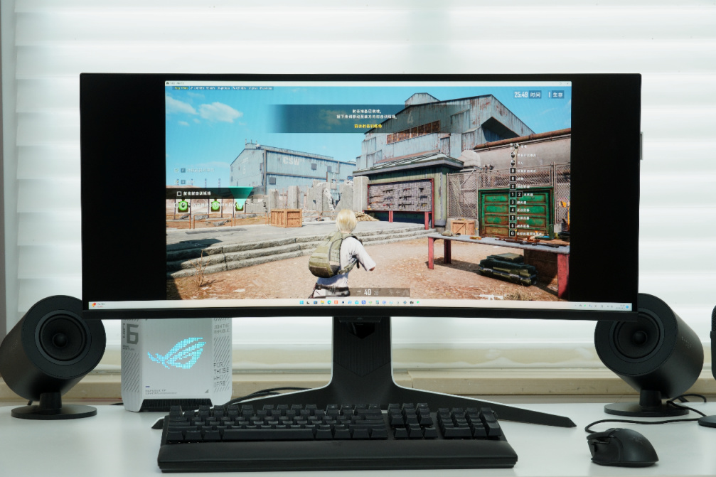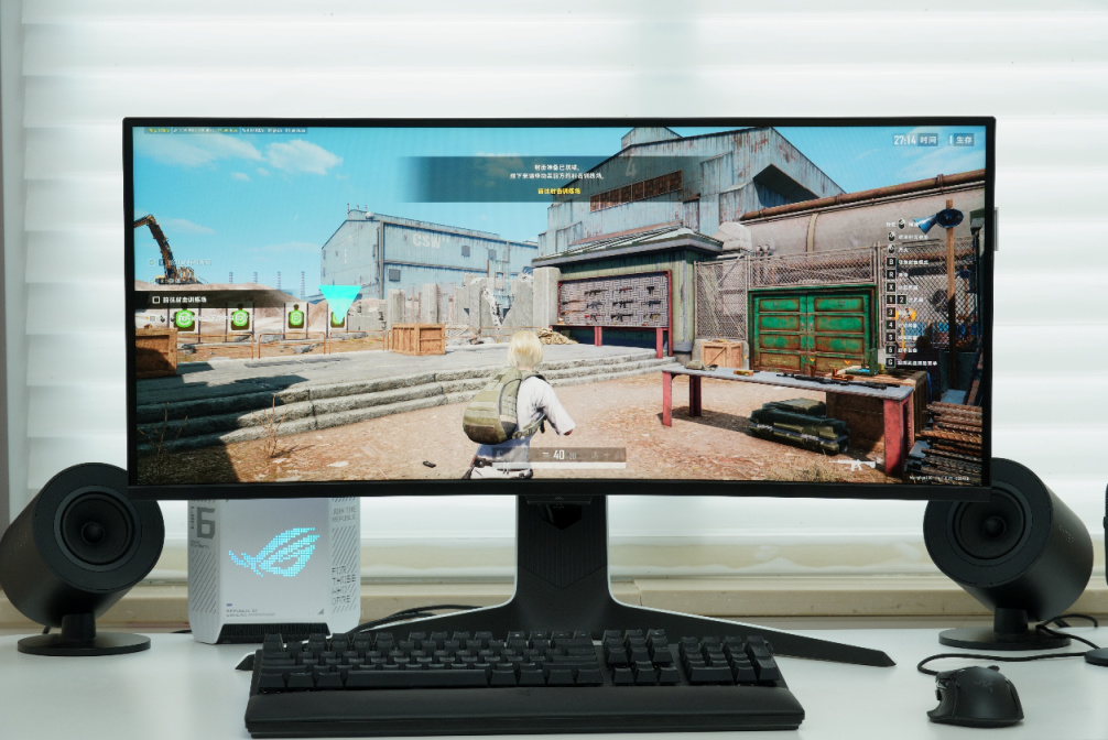 ▲再来看一眼《PUBG》,21:9屏幕下,屏幕右侧桌子边上还能够看到钢筋,而屏幕左侧靶子边上还能够看到木箱,这些都是16:9屏幕所无法看到的视角。因此,带鱼屏更大的横纵比能够有效增加游戏视野宽度,进而避免敌人从侧翼进行偷袭,大幅提高吃鸡概率。