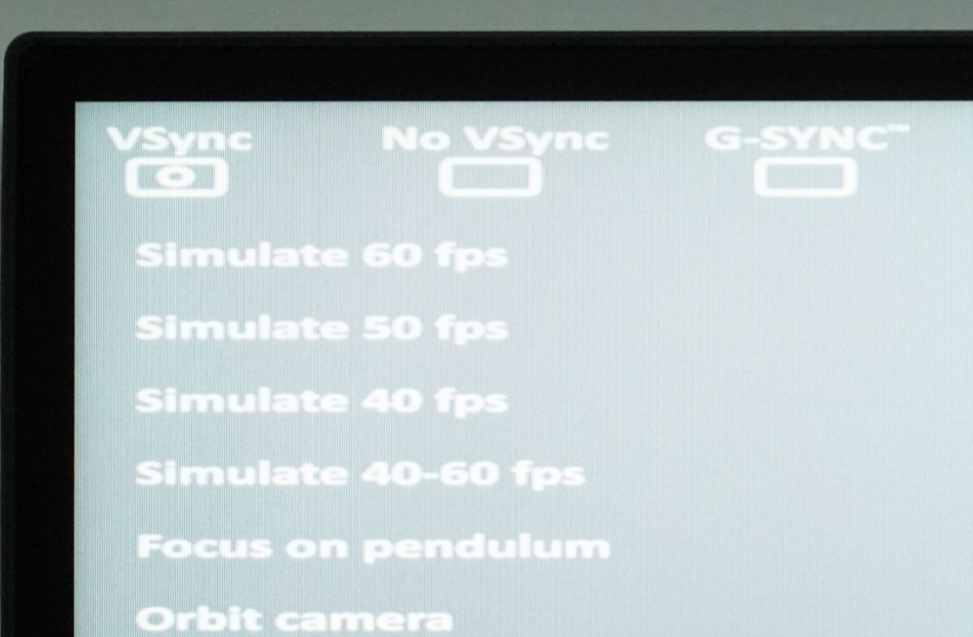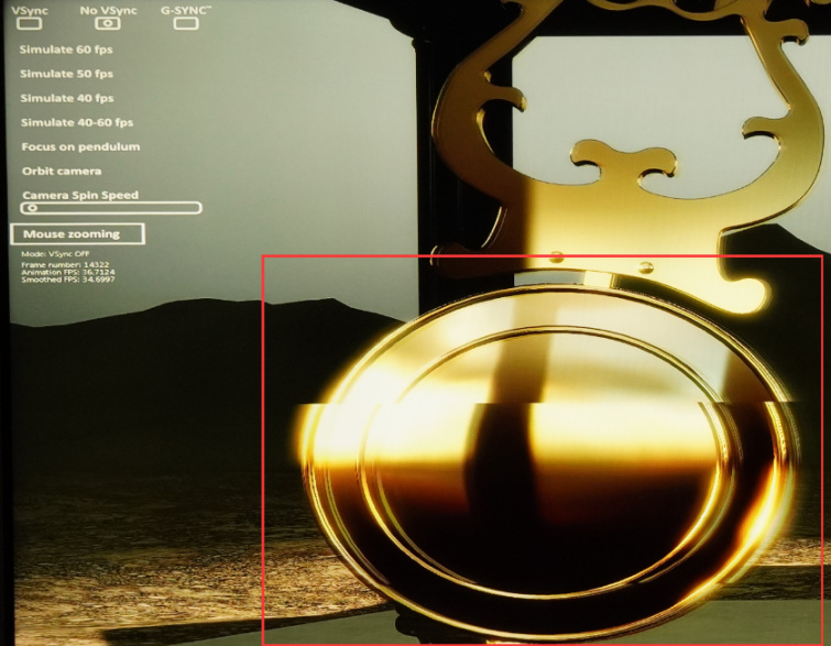 ▲关于如何对VRR技术进行测试,我这里推荐一款NVIDIA官方出品的免费测试软件G-SYNC Pendulum Demo,也就是我们俗称的钟摆测试。