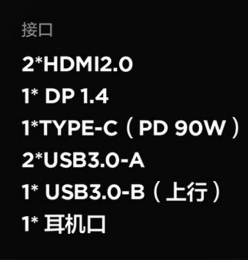 ▲接口方面,雷鸟Q8提供了2个HDMI 2.0接口,一个DP接口,一个Type-C接口(支持PD 90W充电),一个USB 3.0 Type-B上行接口与2个USB 3.0 Type-A接口以及一个3.5mm耳机接口。
