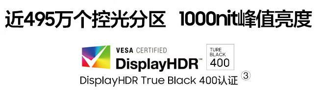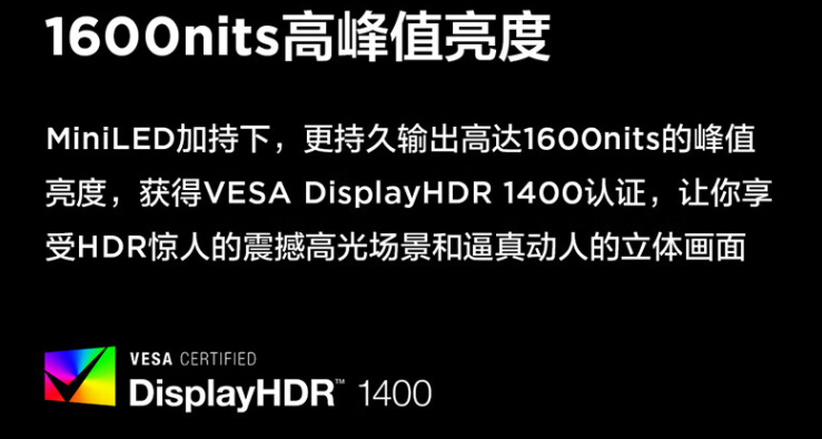 ▲而MiniLED背光技术的屏幕,峰值亮度可达1600nits甚至更高,因此,VESA认证目前提供了DisplayHDR 1400认证,更高的峰值亮度与对比度,使其在显示HDR图像时画面小姑家哦更加惊艳,同时MiniLED背光显示器无需担心OLED屏幕莫须有的烧屏。