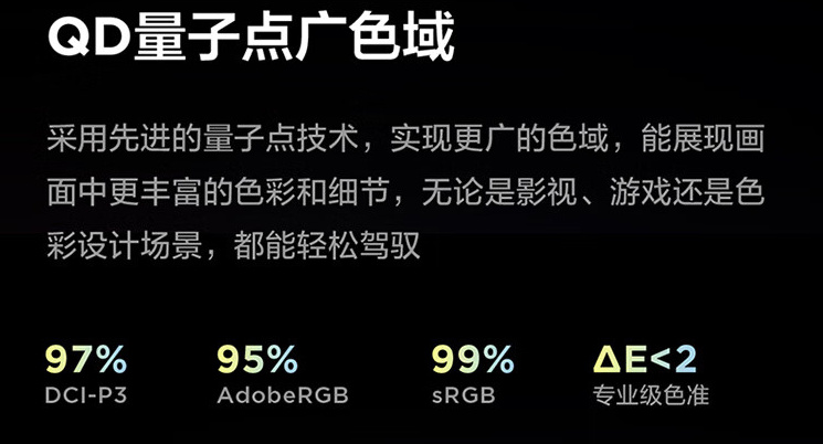 色彩方面,其采用了QD量子点广色域技术提升屏幕的色彩覆盖与色彩精准度。