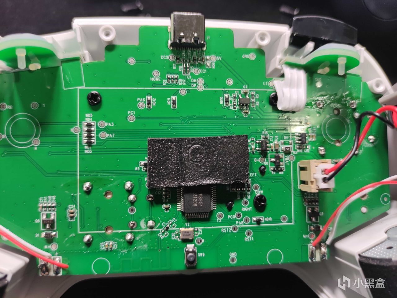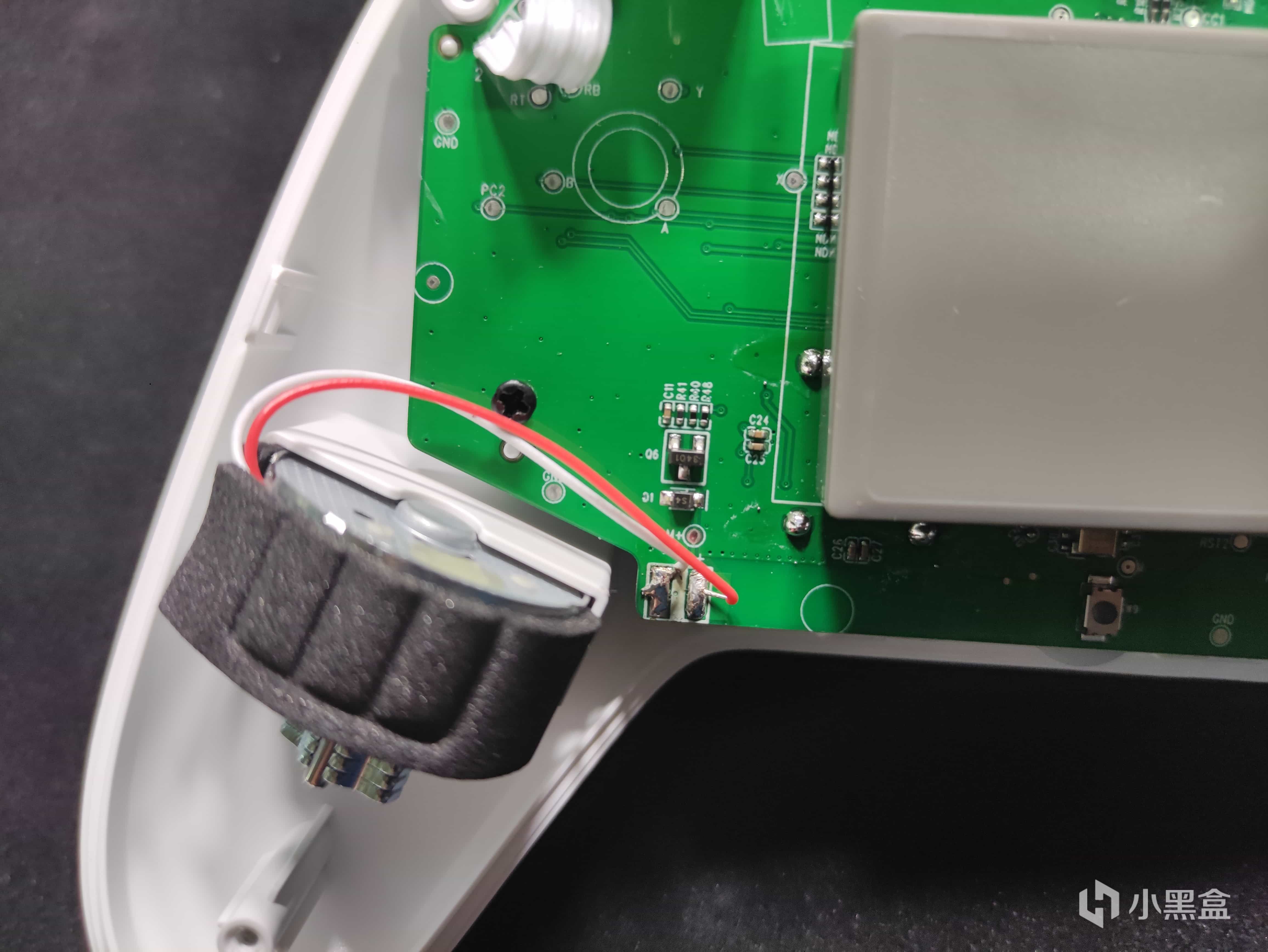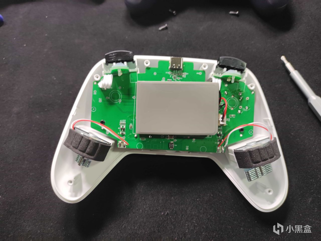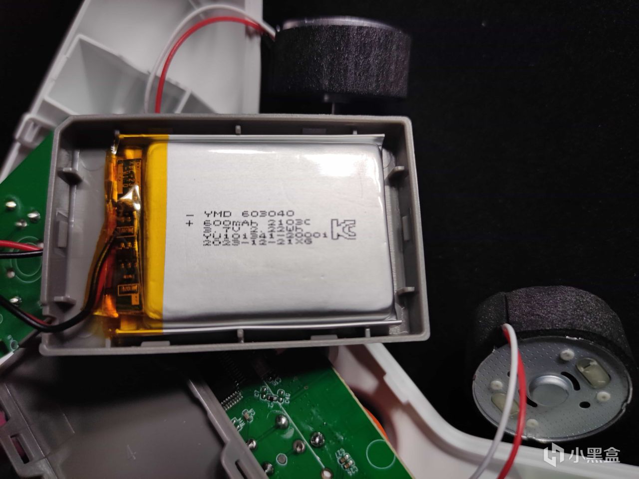 打开之后就能看见手柄的PCB版背面,其中电池部分被一个小的塑料壳所包裹起来。