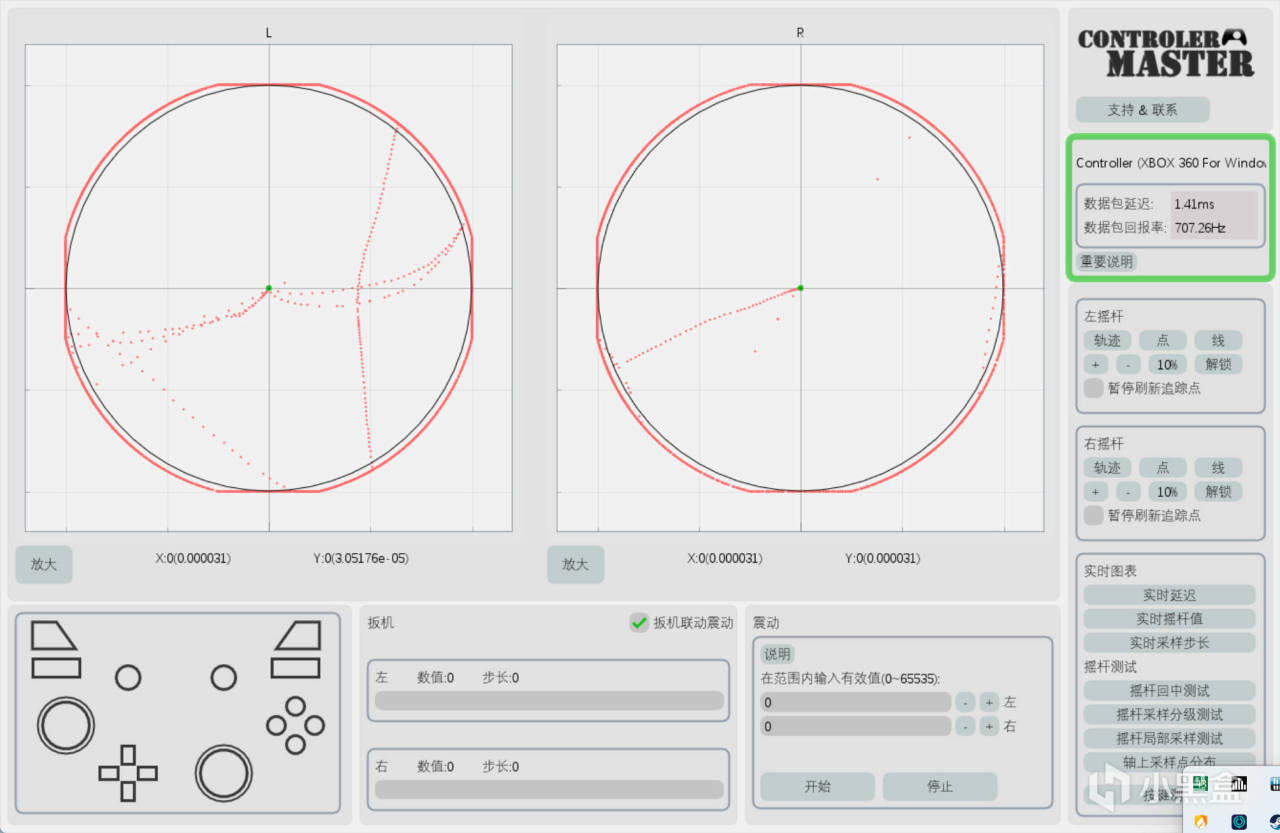 而虽然在按键上有些不足,但是其却在性能上实现了全面方超,500hz回报率,512的摇杆分级,可以说是吊打xbox手柄。(个人印象中xbox手柄回报率是125或者更低,摇杆分级则是400或者更低)