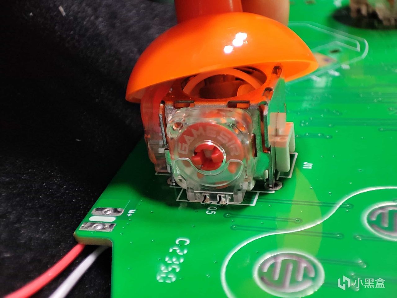 然后安装回去的时候需要注意的一点是,内部PCB板上的螺丝都是短的螺丝,外部固定的是长的螺丝,扳机键的那个铁丝弹簧需要卡在PCB板上的白色小方框中,如果不卡也可以,但是手感会变得很软,卡在PCB板上会导致PCB板有一些刮痕,玩家自行选择。