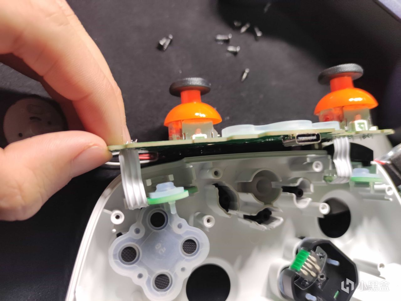 想要卸下PCB板子需要玩家将电池拿下来,(下方是一个海绵粘着橡胶)拧下PCB板上的所有螺丝即可拿下PCB板。