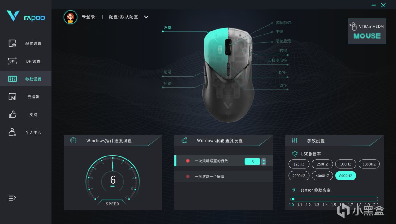 雷柏VT9Air这款鼠标是支持双模连接的,在有线连接模式下,它的报告率可在驱动里面设置为8000Hz,体验上会更为精准便捷,特别是在一些微操作方面高回报率的优势就会体现出来▼