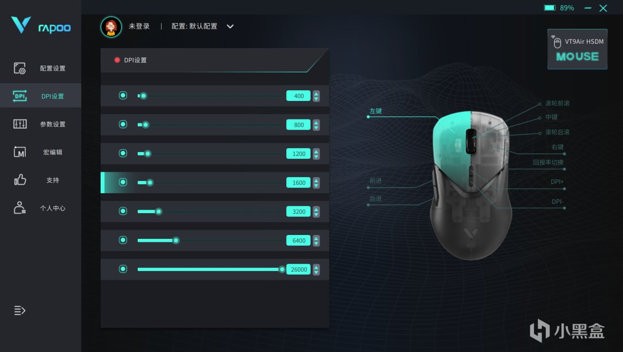 DPI设置可以7档调节,用户可以根据使用需求来进行设置▼
