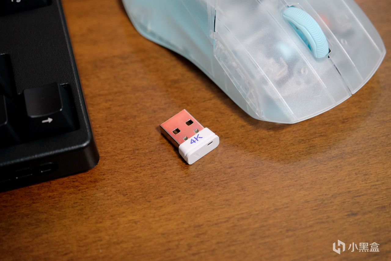 值得一提的是这次Air采用的是Nano 4K接收器,体积跟传统的接收器大小一致,非常小巧,更重要的是在这么小的体积下还预留了LED提示灯,在与鼠标连接后可以根据剩余电量仪绿色(80-100%)、黄色(60-80%)、橙色(40-60%)、红色(20%以下),可以方便用户实时查看电量▼